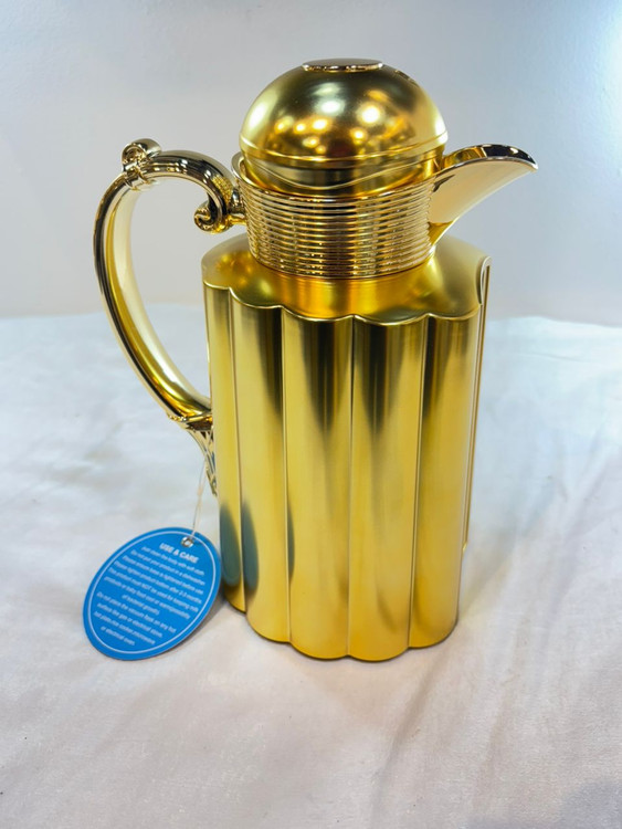 این فلاسک با روکش آب طلا، ترکیب منحصر به فردی از زیبایی و کارایی است که میتواند تجربهای لذتبخش از نوشیدنیهای گرم و سرد را برای شما فراهم آورد.
